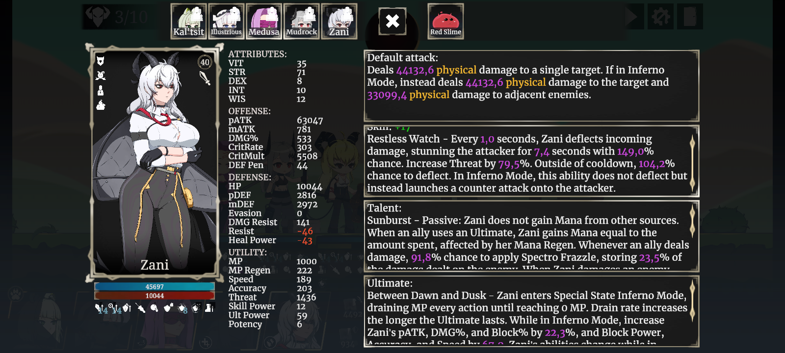 Mudrock now is a super-fighter and i suggest to rebalance her. With +1/+2 gear in my team she stuns all enemies with 224% chance for 10+ seconds, so any battle, including Moonbeast is intriguing only to the point "will Mudrock die before her first ultimate or not".